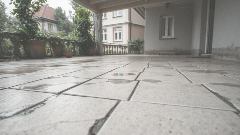 - zastoiny wody na tarasie, które nie powinny mieć miejsca, powinny wzbudzić niepokój,